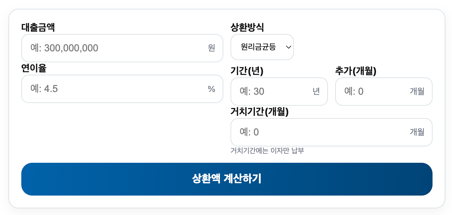 - 상환기간에 추가 개월을 반영하거나, 거치기간을 설정해 다양한 시나리오를 시뮬레이션 가능